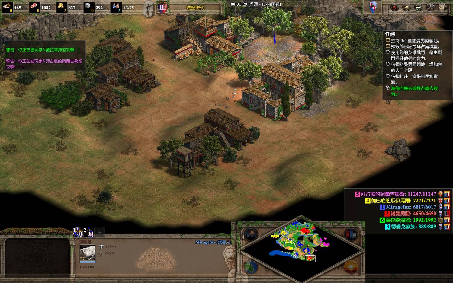初期兵夠吃兩個諾曼營地跟沒牆的村莊