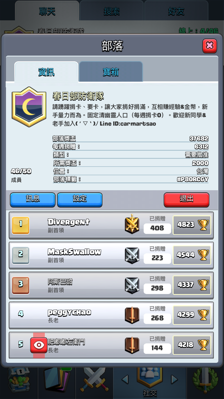 希望踴躍要卡捐卡,大部分都秒捐,部落戰寶箱都可打滿