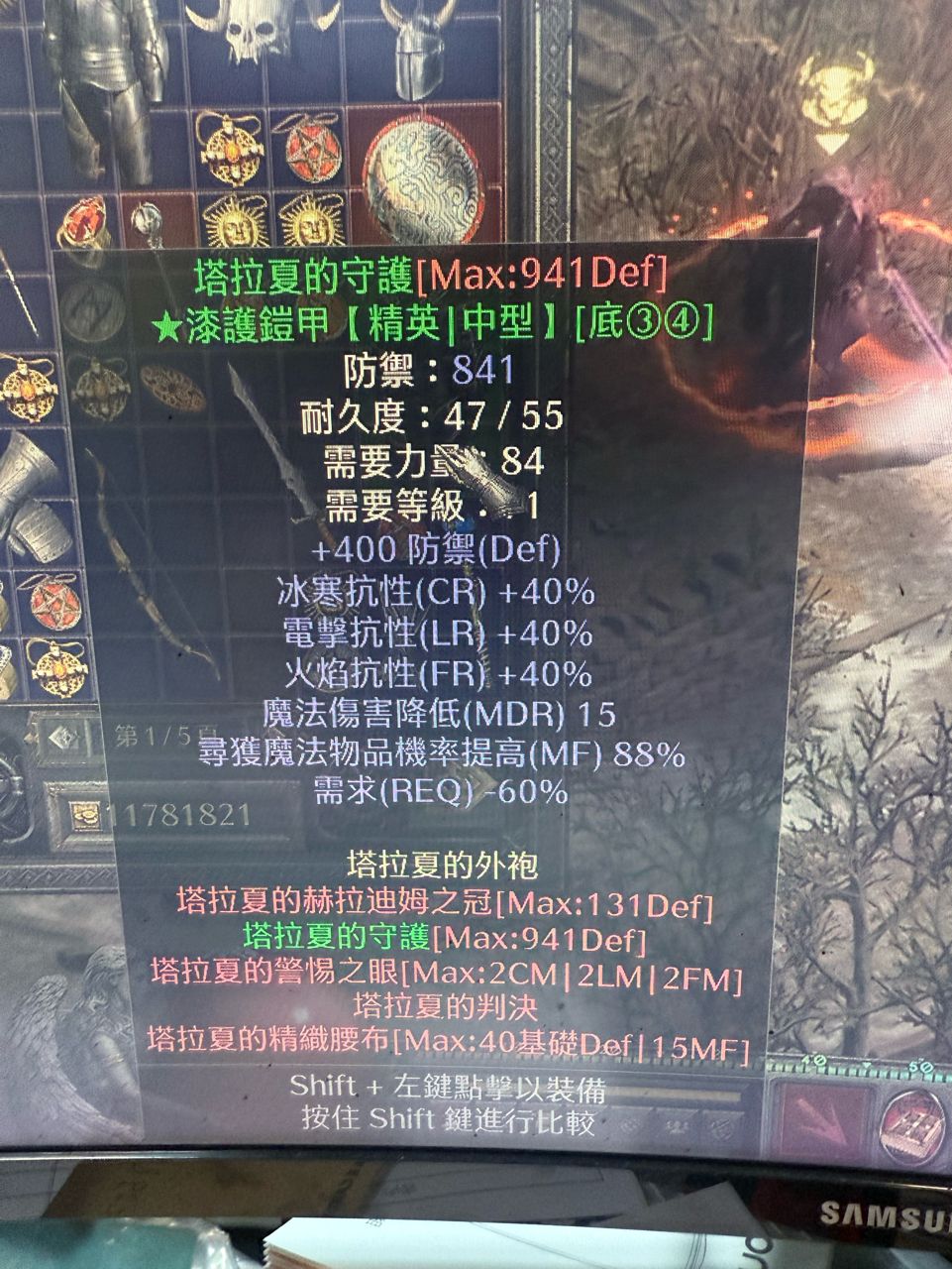 用其中一件綠漆甲換一下烏鴉之霜*1 +冰雪交織+雷神之力