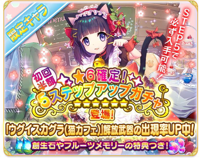 ※★6 キャワーク(猫カフェ)はイベント後半期間より入手可能となる限定キャラです