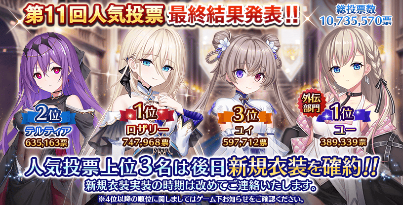 第11回人氣投票結果揭曉