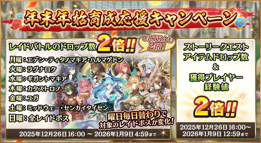■常駐RAID輪流兩倍 & 主線掉落+RANK EXP兩倍