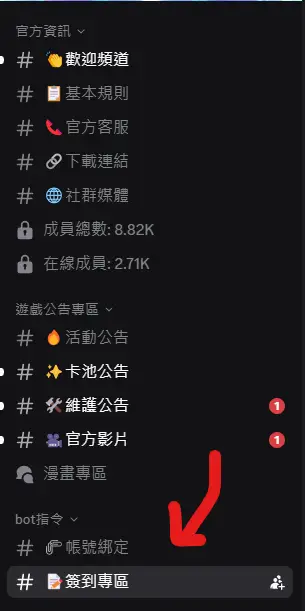從一旁的主題列找到「簽到專區」