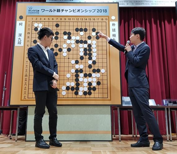 柯潔和朴廷桓在講解現場