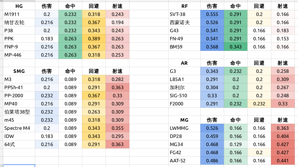 從表可以看出,傷害 │ 命中 │ 回避 │ 射速 都需強化的情況下