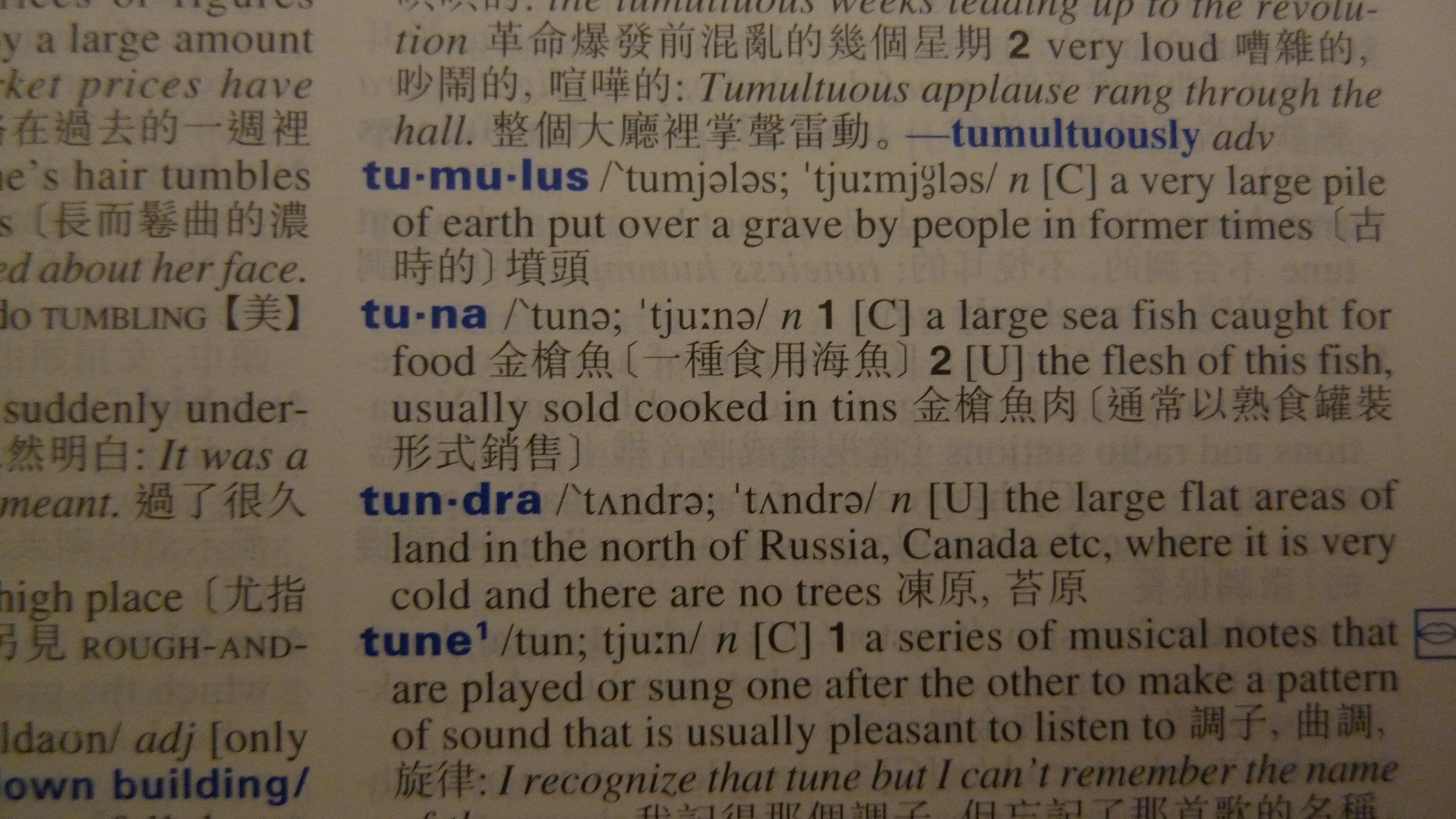 翻朗文字典的人,只會看到 Tuna 是金槍魚的翻法,