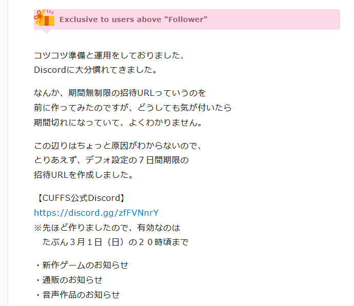 另外Cuffs也開了自家宣傳用的DC(有說連結在7天內會失效),而且這陣子Cuffs最近才