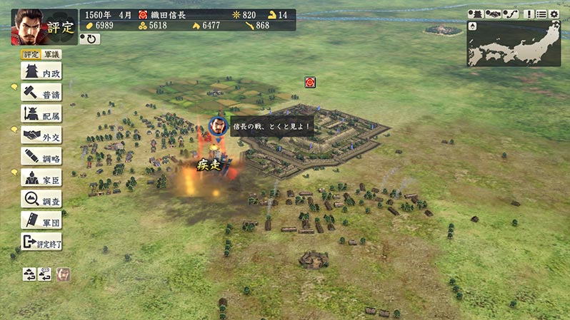 出陣時,家臣根據敵我條件,提出軍事部屬羽進軍路線