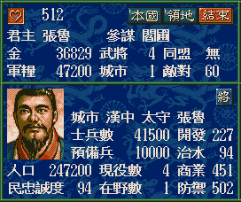 劉備入蜀 金 4100 米 19200 兵 54000 名聲 394