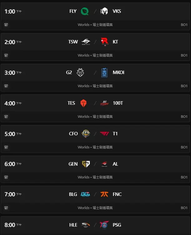 [閒聊] 10/16 瑞士輪D2 賽程