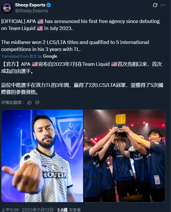 看板LoL (英雄聯盟)作者AoyamaNanami (AoyamaNanami)時間3小時前 (2025/11/13 11:27)推噓26(27推 1噓 11→)留言39則, 36人參與討論串1/1