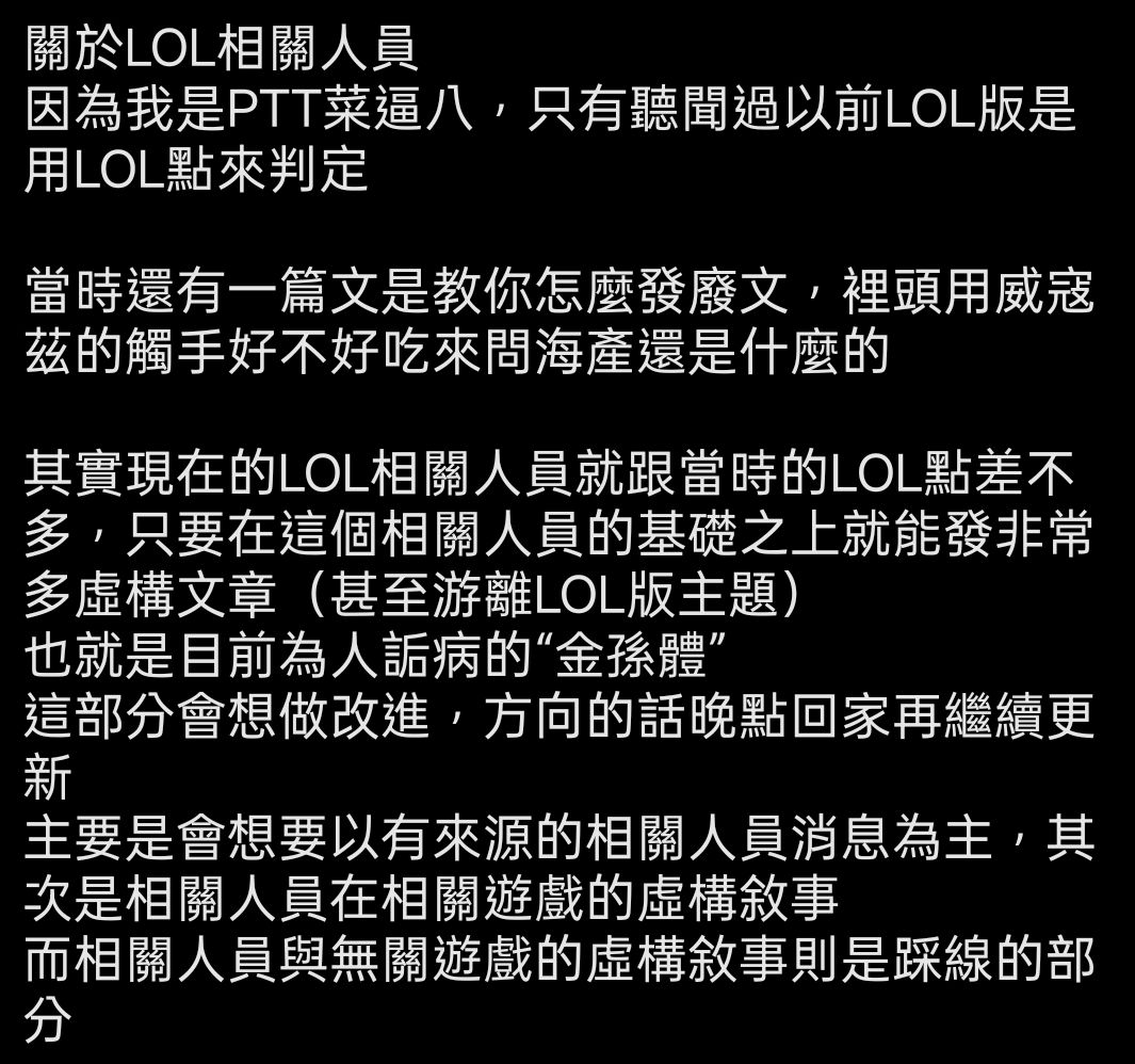 順帶一提讓我想到上次參選時關於lol相關人員表述時我額外提出來的東西
