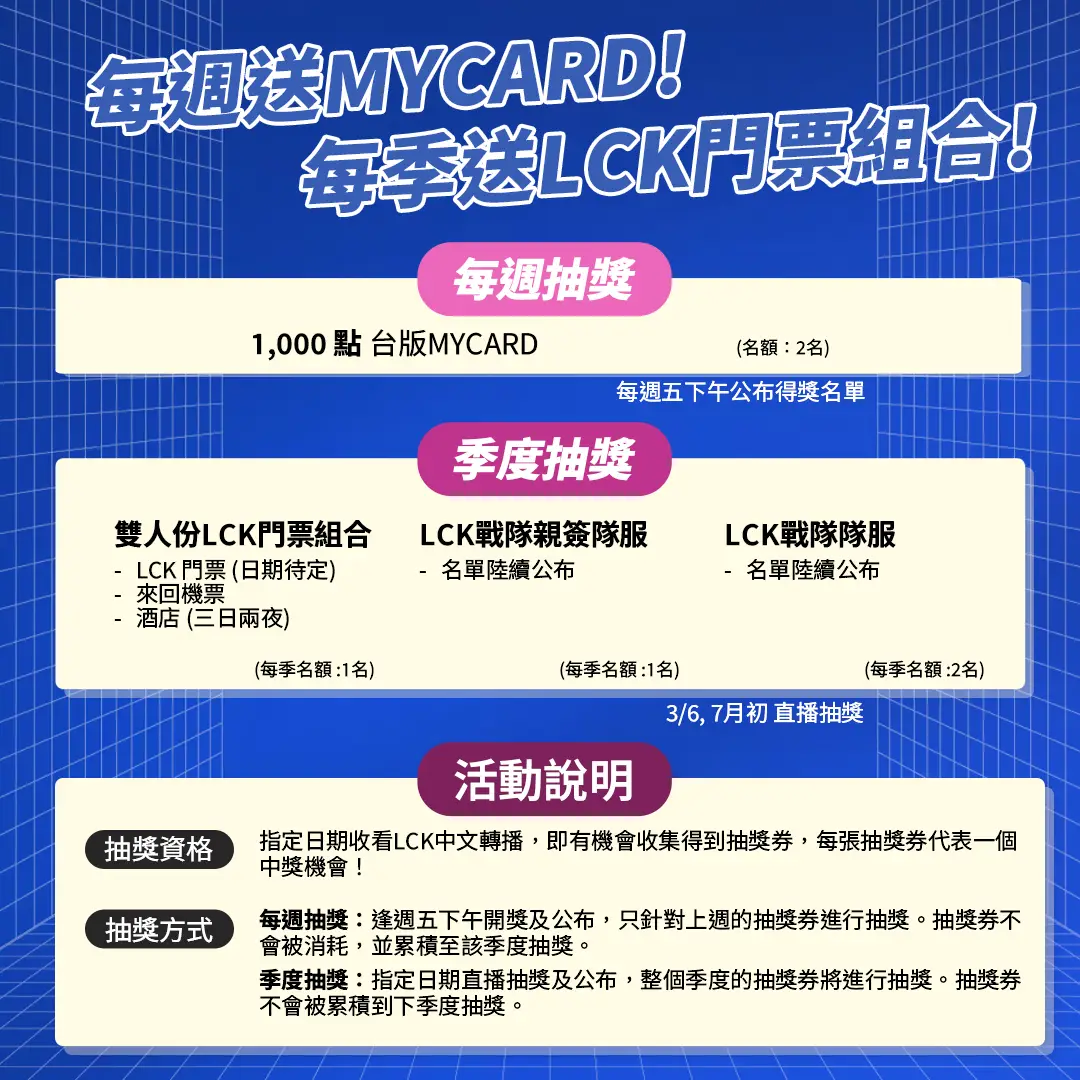 鎖定收看2026 LCK賽季,就有機會狂拿抽獎券!