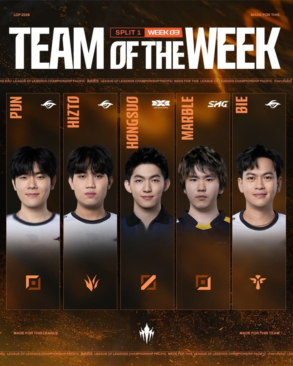 2026 LCP 第三週最佳第一隊,上一週各線路表現最亮眼的選手