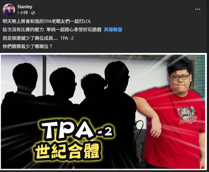 明天晚上將會和我的TPA老戰友們一起打LOL