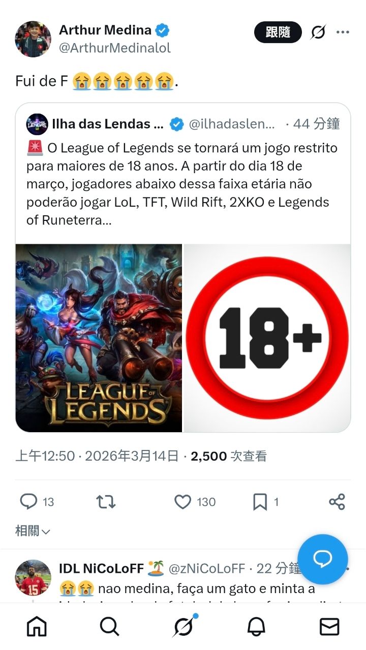 18 歲以下的巴西公民將無法遊玩英雄聯盟、聯盟戰棋、激鬥峽谷、2XKO 和英雄聯盟符文
