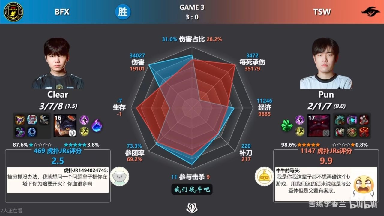 但由於pun大哥對位爆了clear三把