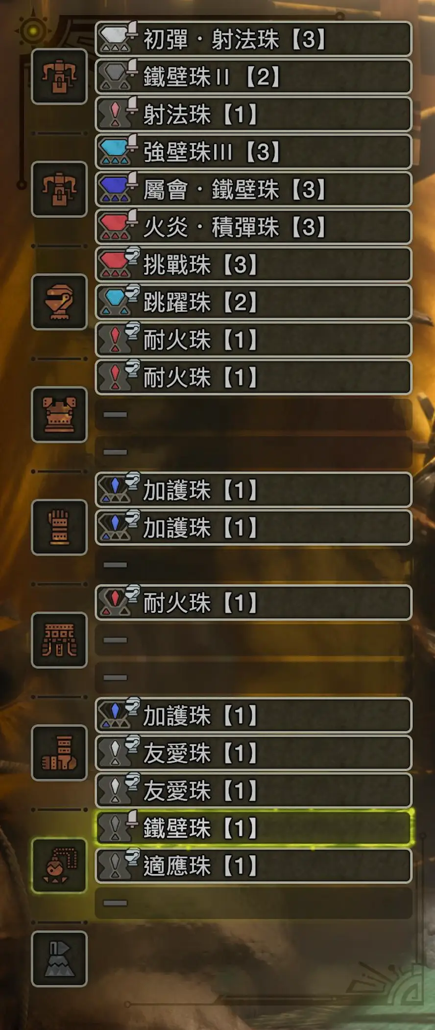 (護石的部分可參考下述的必備技能,湊出差不多的就好)
