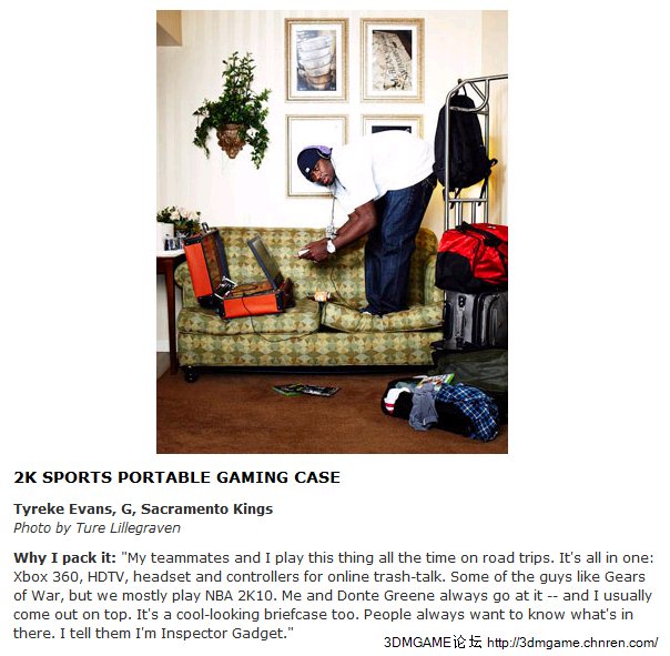 Evans表示 NBA2K10是自己十分鍾愛的一款遊戲,甚至會帶隊友來家裏約戰。