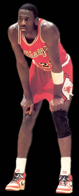 爬了一下Google發現其實1984年MJ有時就會帶護膝了但這個護具內建就有了