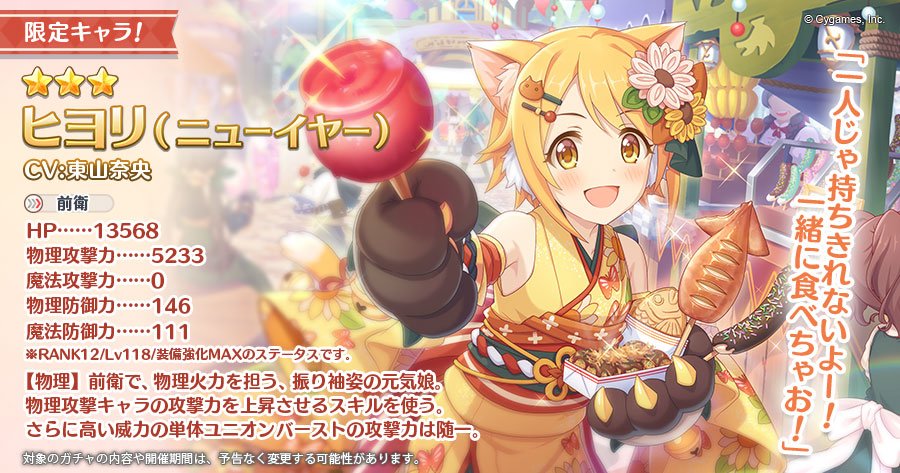 明日01/18(金)に★3ヒヨリ(ニューイヤー)(CV:#東山奈央 さん)が登場します!