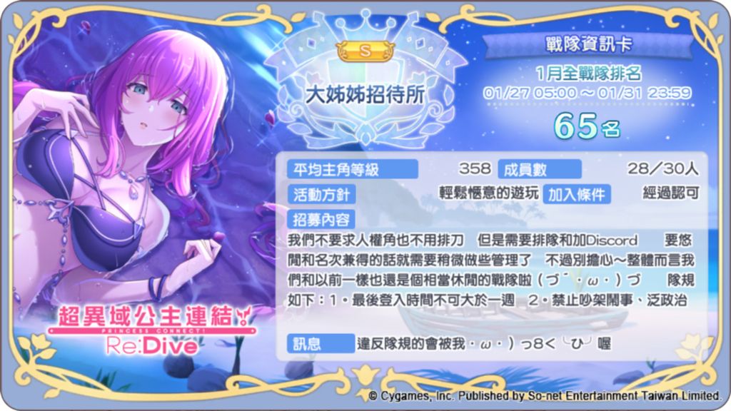 ※ 使用者應詳閱本文內所有資訊後,再決定是否加入,如有必要請詢問發文者、戰隊隊