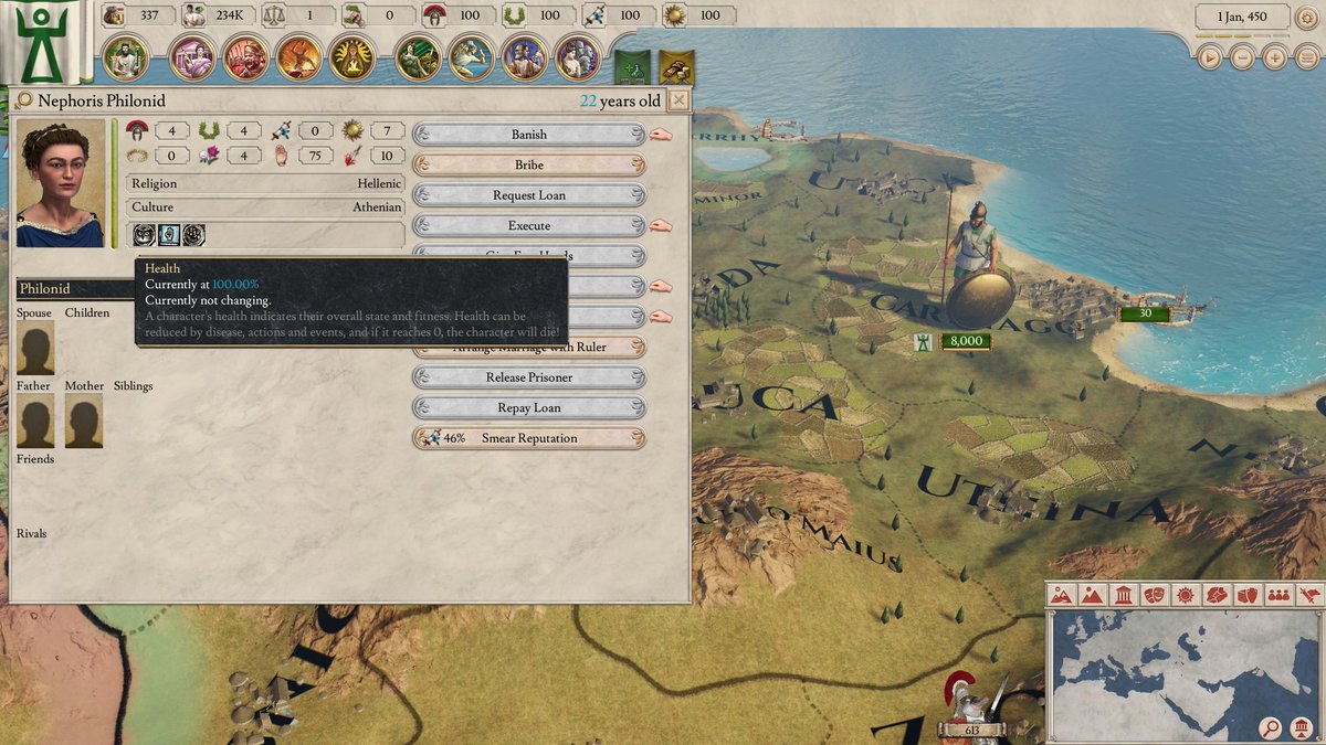 不同於CK2,羅馬二的角色HP會顯示出來,