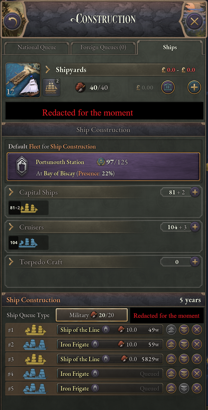 船艦建造會有自己的進度條,並吃造船廠的建造力