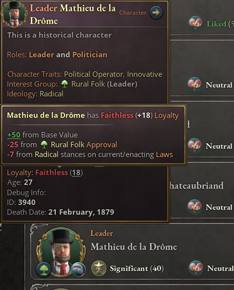 所有角色都有對國家的忠誠度,會影響他們內戰時的立場
