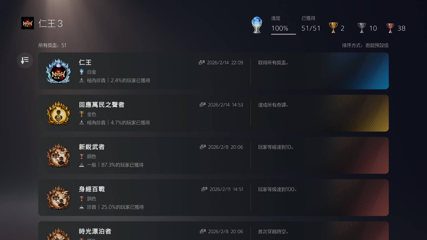 仁王3的白金所需時間約70小時上下