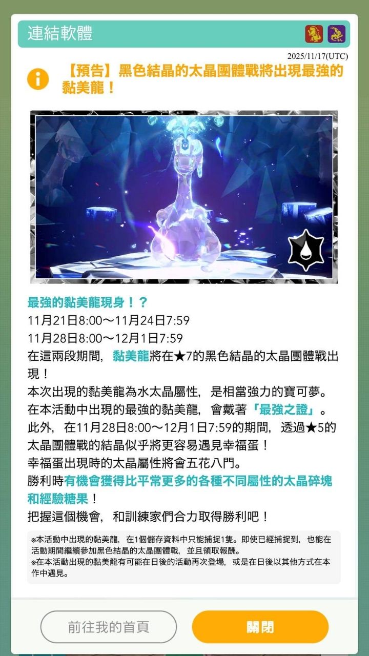 在這兩段期間,黏美龍將在★7的黑色結晶的太晶團體戰出現!!