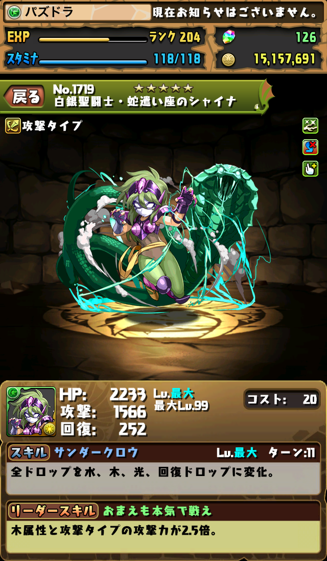 隊長技:龍TYPE攻擊力與回復力些微上升、5C以上攻擊力3倍