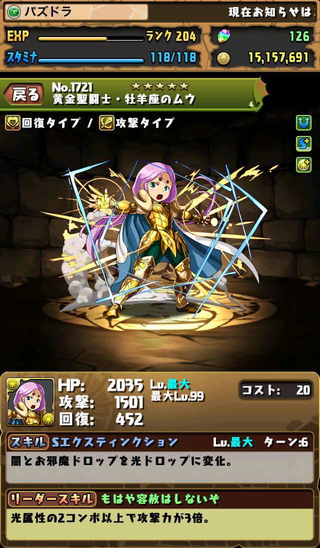 隊長技:光屬2C以上 攻擊力3倍