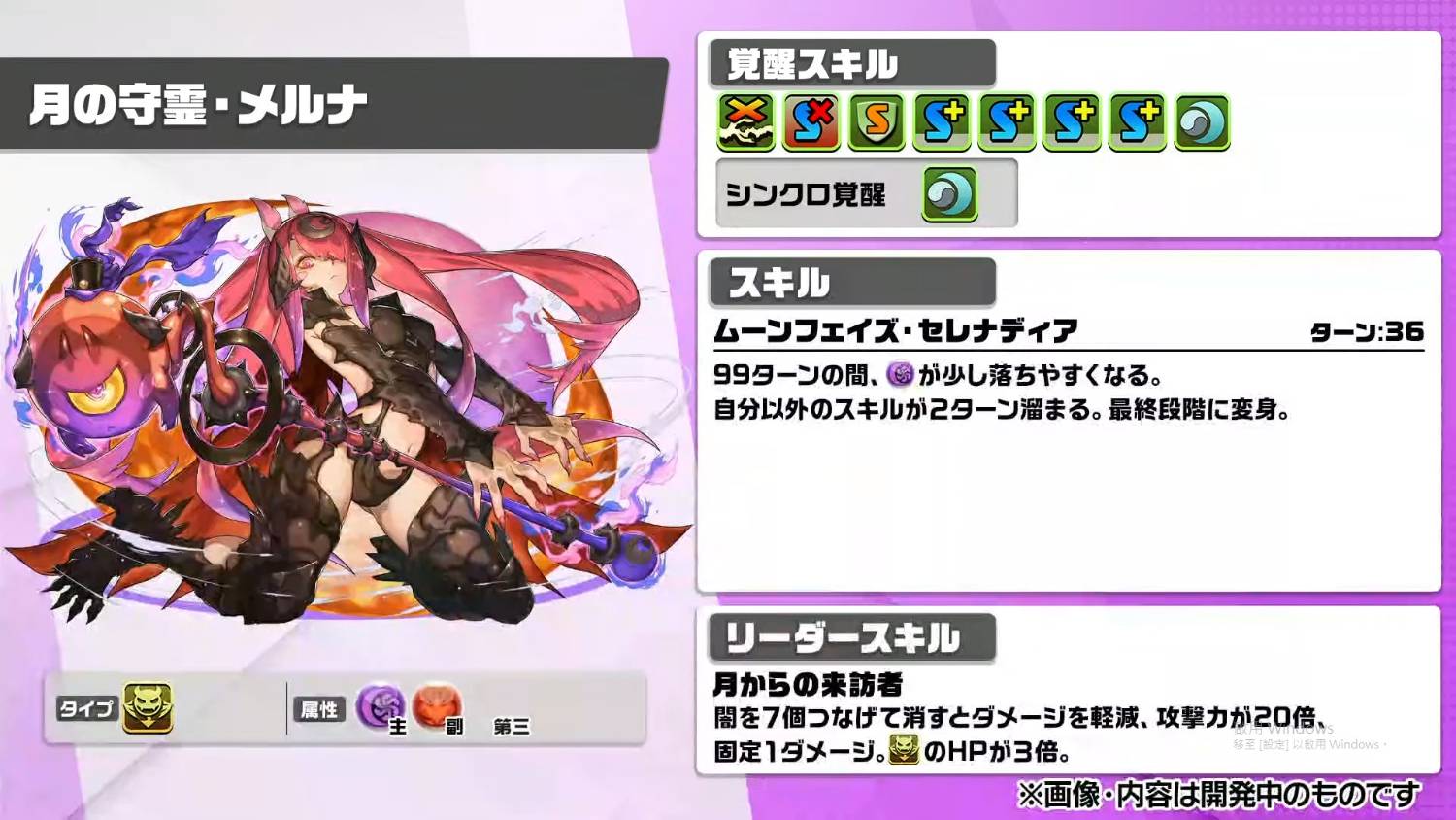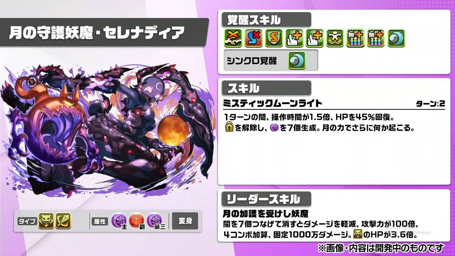 ③ 1回合內惡魔type的攻擊力2倍,傷害上限值突破至120億。隨機產生5個釘珠。