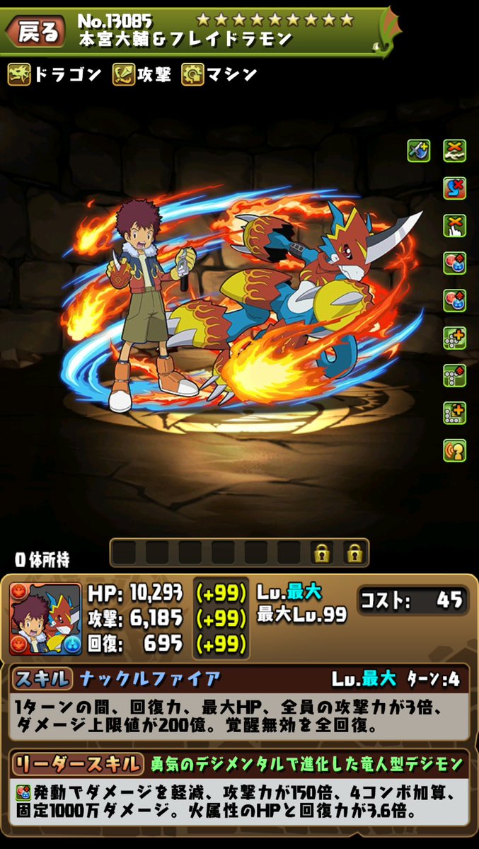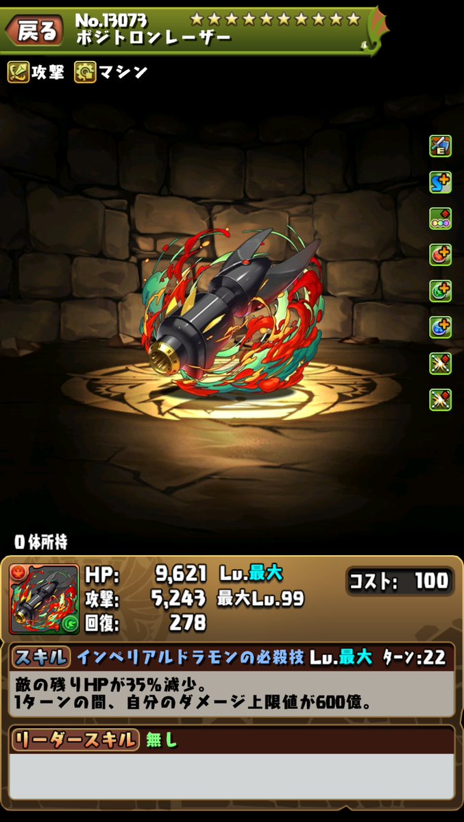 固定追打1000萬傷害。火屬性的HP和回復力3.6倍。