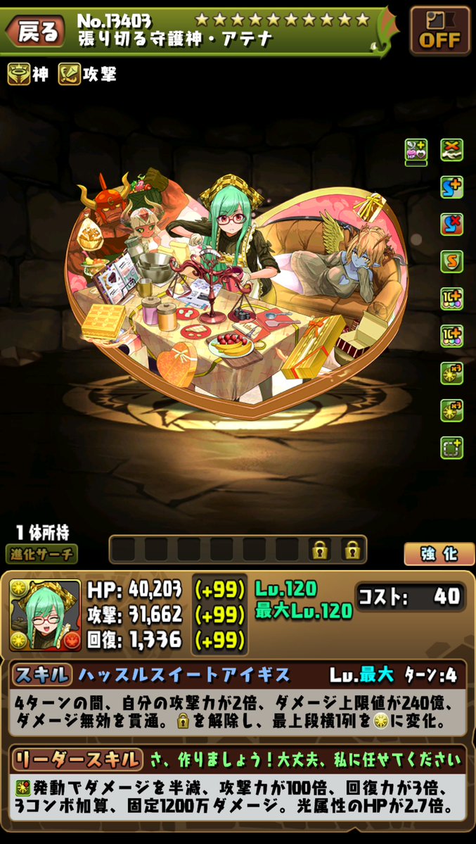 固定追打1200萬傷害。光屬性的HP2.7倍。