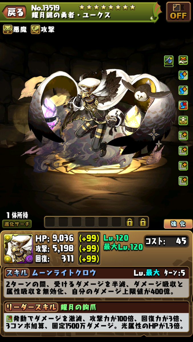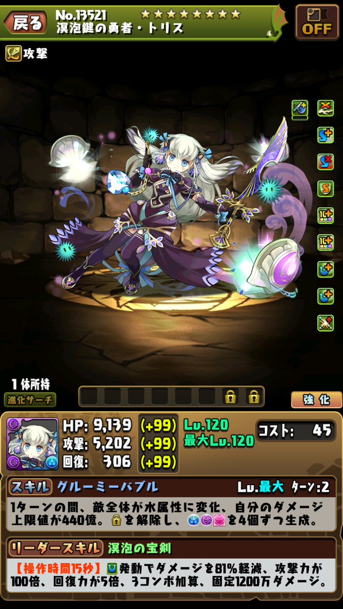 無法消珠狀態全回復。8回合內自己的傷害上限值突破至220億。