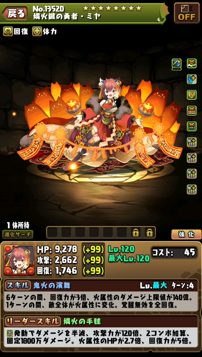 火屬性的HP2.7倍,回復力5倍。
