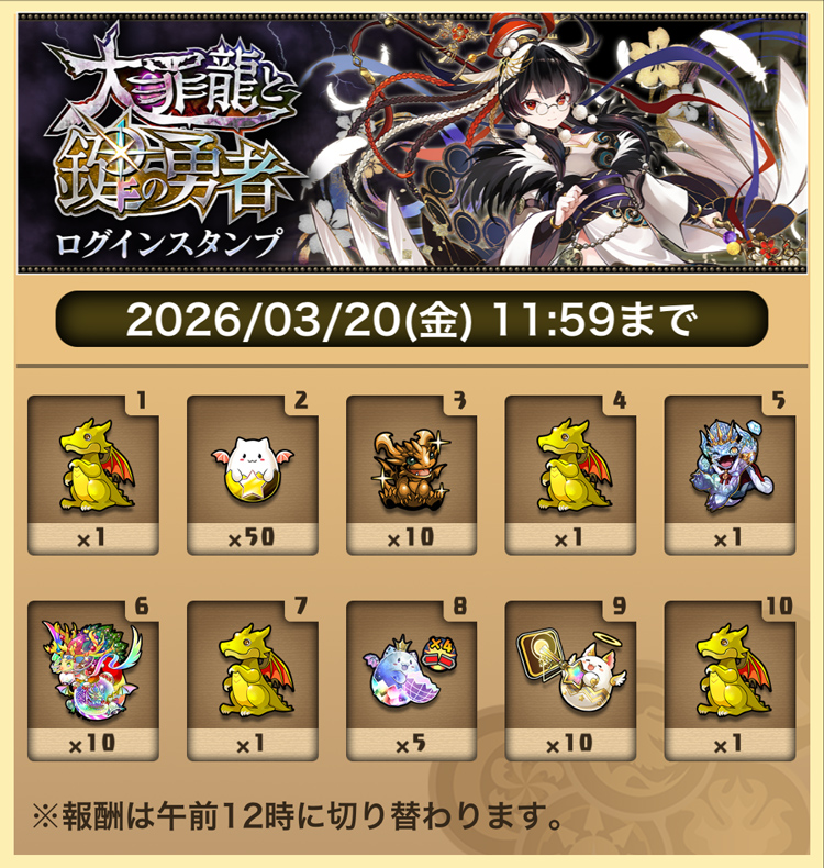 30石 + 30萬MP + 霊妙の鍵の継承者・しづる → 3600日幣(可交換)
