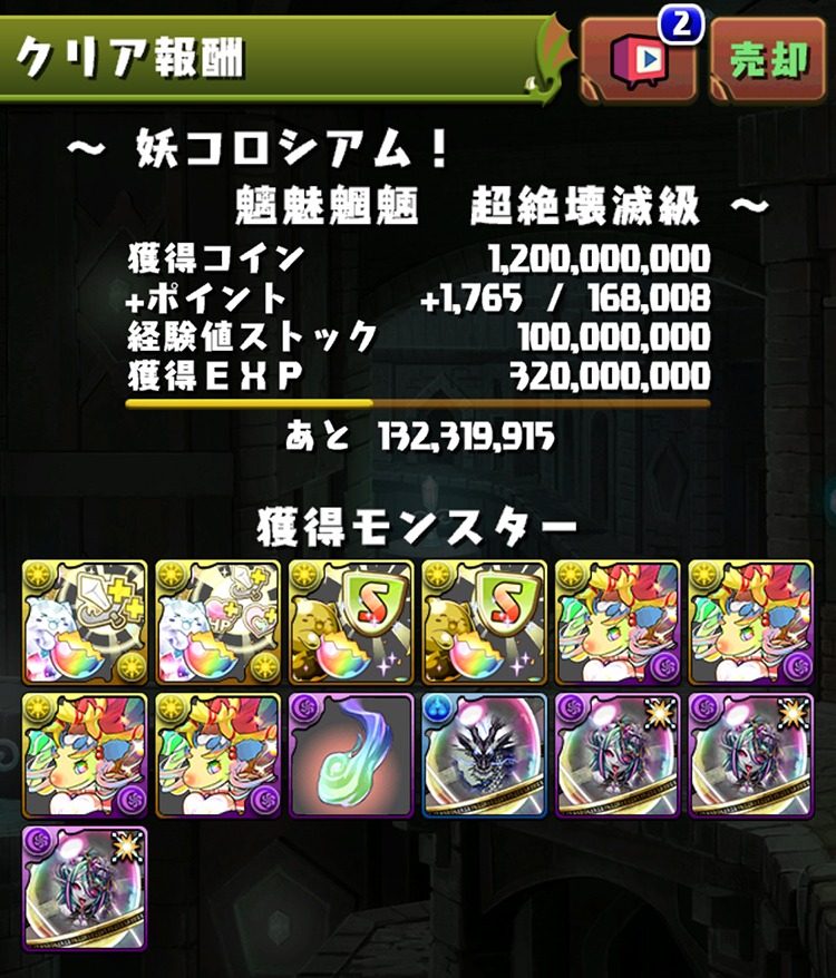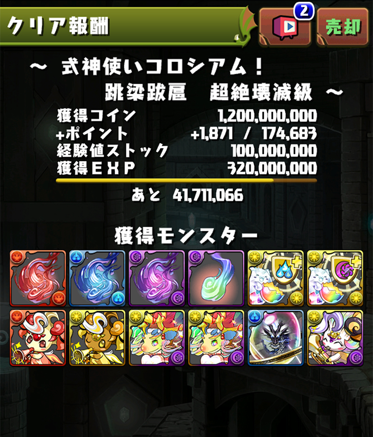 編入「赤陽龍・キョザンサイ」、「青陰龍・リュウウンサイ」及式神相關共6隻的報酬: