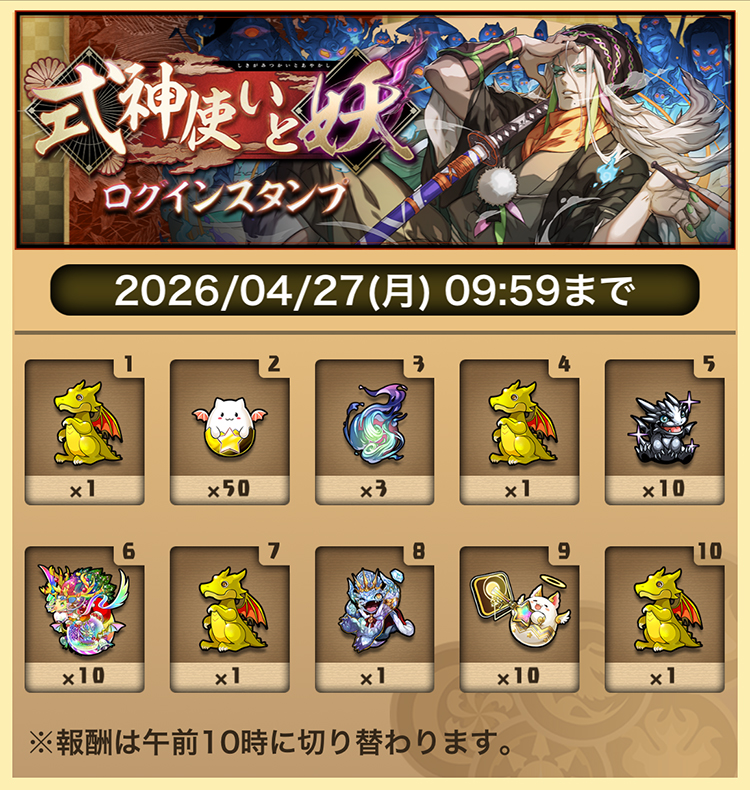 簽到第10日送必出式神使いと妖1抽