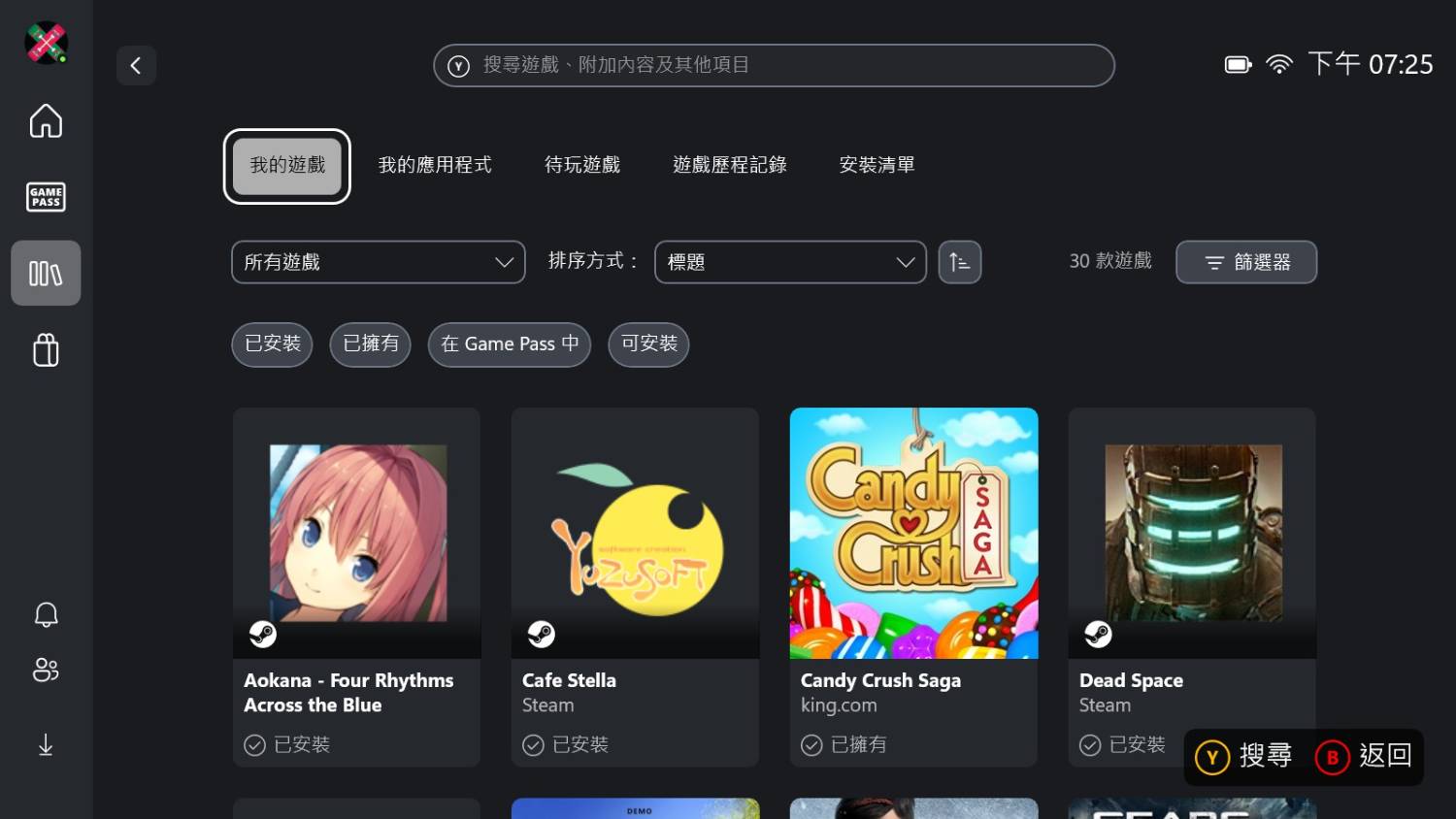 喔對 這個Xbox全螢幕體驗似乎真的只能讀取到上面列出的平台的遊戲