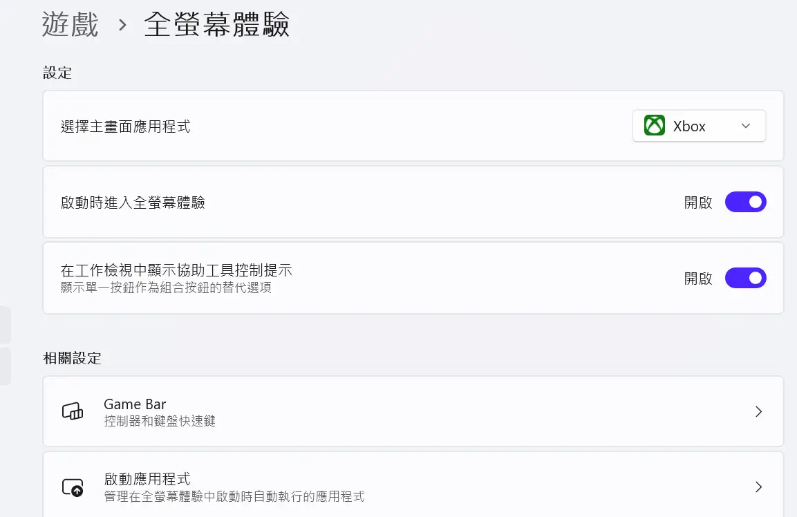 但Xbox全螢幕體驗 沒有這種東西(至少我找不到)