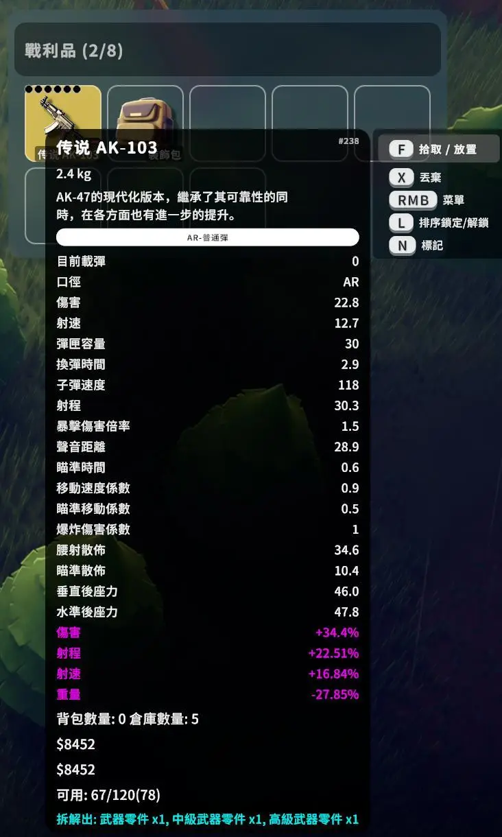 對我來說原廠設定真的太少了(一格只能放3個止血繃帶...)