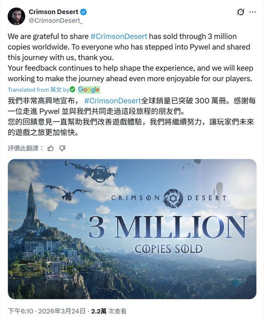 [閒聊] 赤血沙漠 全球銷量300萬達成