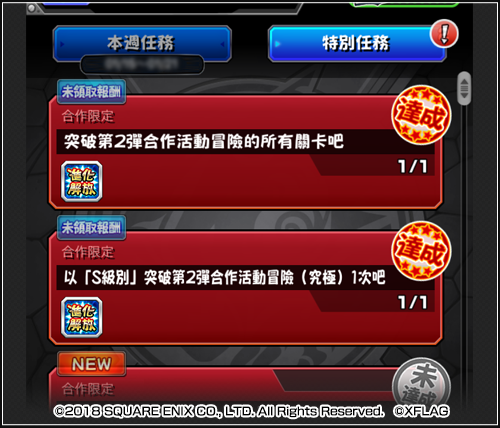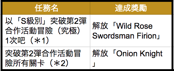 *「FINAL FANTASY」第2彈合作活動冒險中,在突破各冒險的全部關卡後,均可分別特別