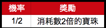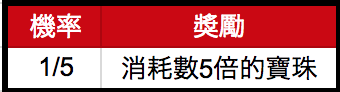 假如成功符合各次遊戲的獲獎條件,能得到對應倍數的寶珠作為獎勵。而即使不慎預想結