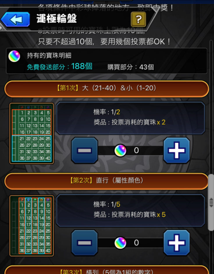 2)選擇在4次遊戲中希望消耗的寶珠數目!