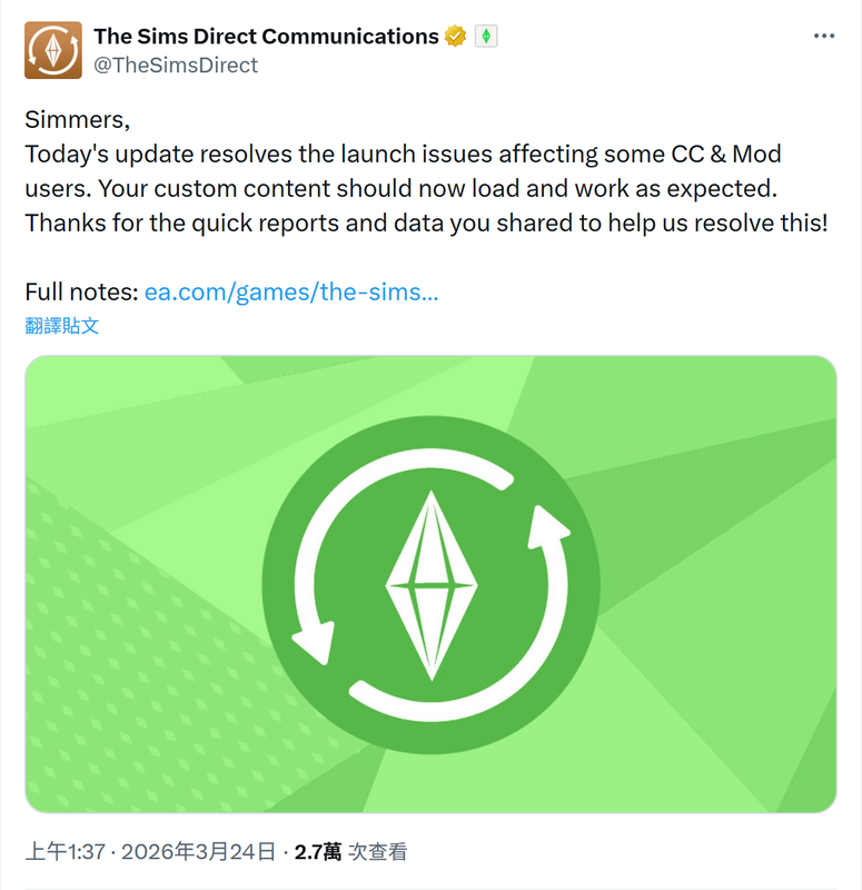 https://www.ea.com/zh-hant/games/the-sims/the-sims-4/news/update-3-18-2026