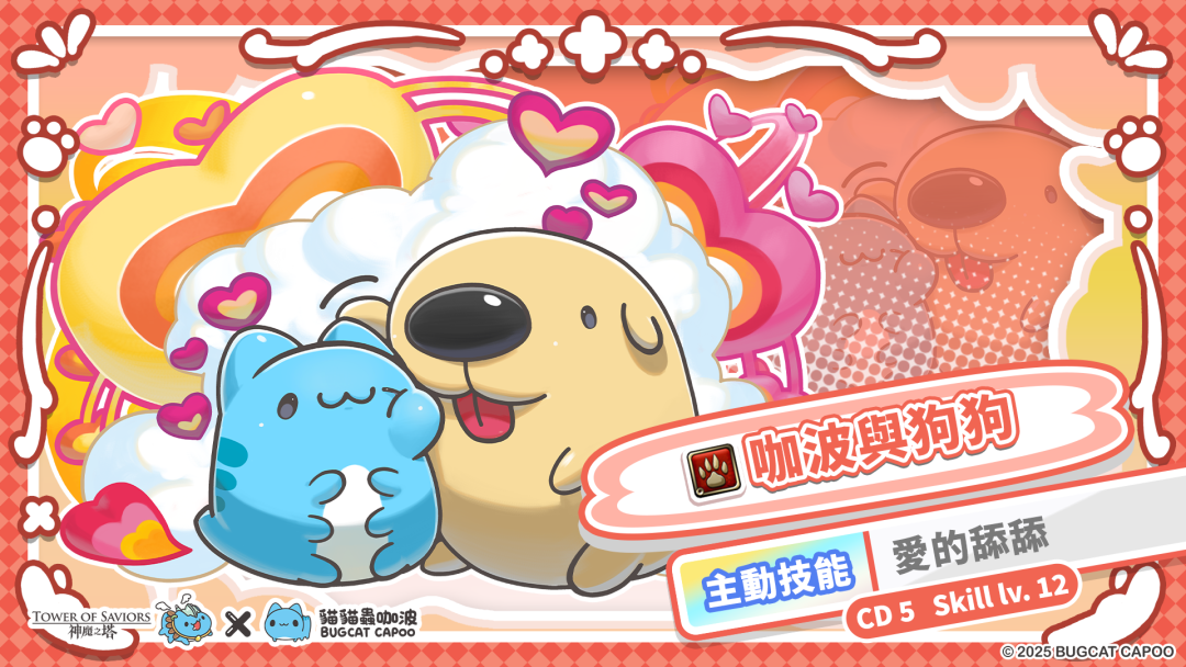 可獲得「咖波與狗狗」1 隻;每成功挑戰「貓貓蟲最好的朋友 Lv2」關卡,可獲得「咖波